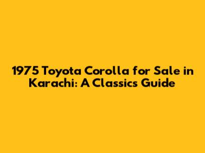 1975 Toyota Corolla For Sale In Karachi: A Classic's Guide
