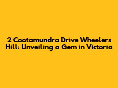 Hey guys! Ever stumbled upon a place that just feels right? Well, let's dive into 2 Cootamundra Drive, Wheelers Hill – a spot that might just tick all your boxes. Nestled in the heart of Victoria, this address isn't just a location; it's a gateway to a lifestyle. Whether you're a family looking for the perfect home, an investor seeking a promising opportunity, or simply curious about what Wheelers Hill has to offer, stick around. We're about to unpack everything that makes this place special. From the neighborhood vibes to the property specifics, get ready for an in-depth look at why 2 Cootamundra Drive could be your next sweet spot. Let’s explore the details that make this property and its location so appealing, ensuring you’re well-informed about this little slice of Victorian paradise. We'll cover everything from local amenities to potential investment upsides, so buckle up and get ready to discover what makes 2 Cootamundra Drive a place worth talking about.