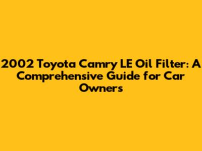 2002 Toyota Camry LE Oil Filter: Everything You Need To Know