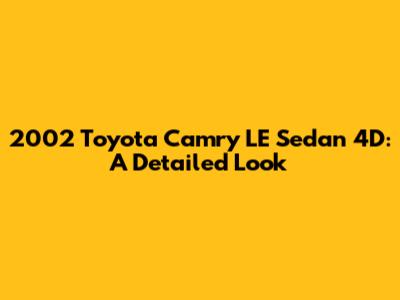 Hey guys! Let's dive into the world of the 2002 Toyota Camry LE Sedan 4D. This car isn't just a mode of transportation; it's a reliable companion that has stood the test of time. Whether you're a potential buyer, a long-time owner, or simply a car enthusiast, this comprehensive overview will provide you with everything you need to know about this iconic vehicle. We’ll explore its features, performance, reliability, and overall value proposition to give you a well-rounded understanding of why the 2002 Camry LE remains a popular choice.