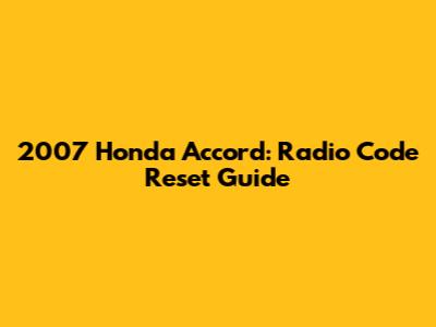 2007 Honda Accord: Radio Code Reset Guide