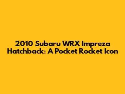 Hey guys, let's dive into the awesome world of the 2010 Subaru WRX Impreza Hatchback! This car, man, it's a legend for a reason. Subaru really nailed it with this generation, packing serious performance into a practical hatchback body. If you're looking for a car that's both fun to drive and can actually haul your gear, the 2010 WRX hatch is seriously worth checking out. We're talking about a car that’s been a favorite among enthusiasts for its rally-bred DNA, all-wheel-drive grip, and that unmistakable turbocharged punch. It's not just about speed; it's about the feeling you get when you're behind the wheel, the connection to the road, and the sheer joy of driving. The 2010 model year brought some cool updates, making it an even more desirable machine for those who appreciate a good blend of performance and everyday usability. Let's break down why this car continues to be a head-turner and a beloved part of the Subaru family.