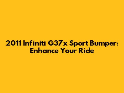 Hey guys, let's talk about making your 2011 Infiniti G37x Sport bumper look absolutely killer. If you've got this ride, you know it's already a stunner, but a sweet bumper upgrade can take it from awesome to EPIC. We're diving deep into why a new bumper is a game-changer, what options you've got, and how to pick the perfect one to make your G37x stand out from the crowd. Trust me, guys, this is the stuff that turns heads and makes your car feel brand new again. We'll cover everything from the aesthetic perks to the practical considerations, ensuring you make an informed decision that you'll be stoked about. Get ready to give your Infiniti G37x that aggressive, sporty edge it deserves!