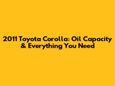 2011 Toyota Corolla: Oil Capacity & Everything You Need