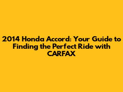 Hey everyone! Looking for a 2014 Honda Accord for sale? You're in the right place! Finding a used car can feel like a wild goose chase, but with the power of CARFAX and a little know-how, you can cruise into your next ride with confidence. This guide is your friendly roadmap to navigating the used car market, focusing specifically on the 2014 Honda Accord and how CARFAX can be your best friend in the process. We'll dive into what makes this car a popular choice, why a CARFAX report is essential, and what to look out for when you're shopping.