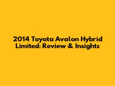 Hey guys! Today, let's dive deep into the 2014 Toyota Avalon Hybrid Limited, a car that combines luxury, comfort, and impressive fuel efficiency. If you're in the market for a reliable and sophisticated hybrid sedan, this model might just be the perfect fit. We’ll explore everything from its performance and interior features to its technology and overall driving experience. Buckle up, because we've got a lot to cover!