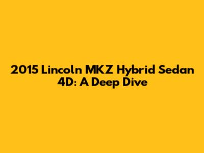 Hey guys! Today, we're diving deep into the 2015 Lincoln MKZ Hybrid Sedan 4D. This car isn't just about getting from point A to point B; it's about doing it in style, comfort, and with a conscience. We're going to explore everything from its fuel efficiency and performance to its luxurious features and overall driving experience. So, buckle up and let's get started!