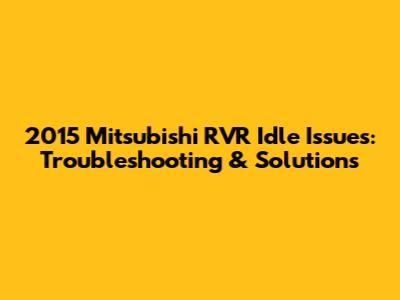 2015 Mitsubishi RVR Idle Issues: Troubleshooting & Solutions