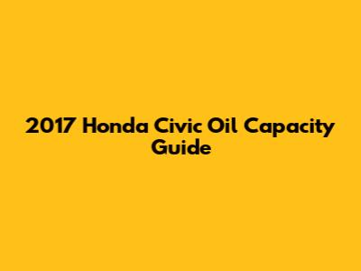 Hey guys! Figuring out the right oil capacity for your 2017 Honda Civic is super important for keeping that engine running smoothly. Let's dive into everything you need to know to ensure your Civic stays in top shape. Getting the oil right is key for performance and longevity, so let's get started!