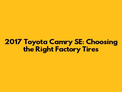Choosing the right tires for your 2017 Toyota Camry SE can significantly impact your driving experience. By understanding the importance of factory tires, identifying the original tire specifications, considering recommended tire brands and models, and following essential maintenance tips, you can make an informed decision that ensures optimal performance, safety, and comfort. Remember to prioritize your individual needs and driving conditions when selecting replacement tires, and don't hesitate to consult with a trusted tire professional for personalized recommendations. With the right tires and proper maintenance, you can enjoy a smooth, safe, and enjoyable ride in your 2017 Toyota Camry SE for years to come!