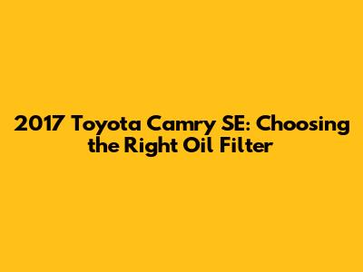 Hey, car enthusiasts! If you're a proud owner of a 2017 Toyota Camry SE, you know how crucial it is to keep your ride in top-notch condition. Regular maintenance, especially oil changes, is key to ensuring your Camry purrs like a kitten for years to come. And when it comes to oil changes, the oil filter is one component you absolutely can't overlook. Let's dive into everything you need to know about choosing the right oil filter for your trusty 2017 Camry SE.