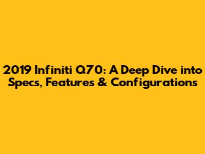 Hey guys! Let's dive deep into the 2019 Infiniti Q70. This sleek sedan was all about luxury and performance, so if you're curious about what made this car tick, you've come to the right place. We'll explore everything from its engine options and interior features to the various trim levels and what they brought to the table. Get ready to uncover the ins and outs of the 2019 Infiniti Q70, a car that aimed to blend comfort and driving pleasure seamlessly. This guide provides an in-depth look at its configurations, features, and specs. Let's get started!