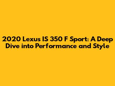 Hey car enthusiasts! Today, we're diving headfirst into the 2020 Lexus IS 350 F Sport, a ride that perfectly blends luxury, performance, and head-turning style. This car isn't just about getting from point A to point B; it's about enjoying the journey. We're going to explore what makes this particular model so special, from its impressive specs to its comfortable interior and the overall driving experience. So, buckle up, and let's get started!