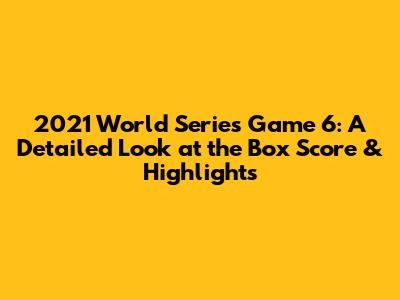 Hey baseball fanatics! Let's dive deep into a thrilling moment in baseball history: the 2021 World Series Game 6. This game wasn't just any game; it was a pivotal clash that had fans on the edge of their seats. The Atlanta Braves were facing off against the Houston Astros, and the stakes were higher than ever. If the Braves clinched it, they would be crowned champions. The game was packed with unforgettable moments, strategic plays, and heart-stopping action. Today, we're going to break down the 2021 World Series Game 6 box score, examine key highlights, and discuss the impact this game had on the overall series. Get ready for a trip down memory lane, filled with some of the best baseball moments you could ask for!