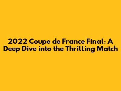 Hey sports fans! Remember the electric atmosphere of the 2022 Coupe de France final? It was a match that had everyone on the edge of their seats, a true spectacle of French football. Let's take a trip down memory lane and relive the excitement, the drama, and the unforgettable moments that defined this epic showdown. We're going to break down everything from the key players and their performances to the tactical masterstrokes and the overall impact of the game. Get ready to dive deep into the heart of the 2022 Coupe de France final, analyzing the strategies, the turning points, and the sheer passion that made it a classic. So, grab your favorite snacks, settle in, and let's get started. We'll be looking at the teams involved, the star players, and the key moments that decided the championship. Trust me, it's going to be a fun ride! This match wasn't just a game; it was a celebration of French football, showcasing the talent, the spirit, and the unwavering dedication of the teams involved. Whether you're a seasoned football aficionado or a casual fan, there's something to appreciate in the thrilling story of the 2022 Coupe de France final. Let's explore the key elements, analyzing the strategies employed, the outstanding performances, and the significant moments that shaped the outcome of the match. Together, we will dissect the dynamics of the game, highlighting the brilliance of individual players and the tactical nuances that determined the final result. Join us as we explore the journey, the anticipation, and the ultimate triumph of the winning team, providing you with a detailed and engaging overview of this unforgettable football event. Let's unpack the narratives, highlighting the critical moments, the strategic adjustments, and the emotional intensity that captivated fans. This detailed analysis will bring you closer to the action, allowing you to relive the excitement and learn more about what made the 2022 Coupe de France final a truly memorable event. We will analyze the tactics, key player performances, and defining moments, providing a thorough overview of this thrilling match. So, let’s revisit the 2022 Coupe de France final and uncover the key moments, star performances, and the strategies that determined the championship. This in-depth analysis will offer you a thorough understanding of the game, including the key players, tactical nuances, and decisive moments. Get ready to relive the excitement and delve into the intricacies of this memorable football event, offering valuable insights for fans. We're going to dive deep into the tactics, player performances, and those critical game-changing moments. We will dissect the teams' strategies, highlighting the critical moments and the standout performances that defined this thrilling match. From tactical masterclasses to individual brilliance, we'll cover it all, ensuring a complete and captivating review of the 2022 Coupe de France final. So, let's gear up for an unforgettable journey through the heart of the 2022 Coupe de France final!