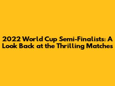 2022 World Cup Semi-Finalists: A Look Back At The Thrilling Matches