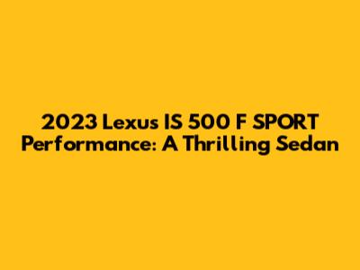Hey everyone! Today, we're diving headfirst into the 2023 Lexus IS 500 F SPORT Performance. This isn't just another sedan; it's a beast that combines luxury, performance, and head-turning style. So, if you're a car enthusiast looking for something that delivers on all fronts, buckle up – this is for you! This article is designed to give you the lowdown on everything that makes this car special. We'll explore its engine, performance capabilities, interior design, and all the features that set it apart. Whether you are already considering purchasing or are simply curious, get ready to discover why the IS 500 is a top contender in the sports sedan market. We are talking about pure driving pleasure! The 2023 Lexus IS 500 F SPORT Performance truly represents the pinnacle of what Lexus offers in the compact sports sedan category. It is a harmonious blend of exhilarating performance, sophisticated styling, and luxurious comfort, making it a highly desirable choice for drivers who demand the best. From its potent engine to its meticulously crafted interior, every aspect of the IS 500 F SPORT Performance is designed to deliver an unmatched driving experience. Let's delve into the details that make this car so remarkable, examining its engine specifications, performance characteristics, interior features, and technological advancements. This comprehensive overview aims to provide you with a complete understanding of what makes the 2023 Lexus IS 500 F SPORT Performance a standout in the luxury sports sedan segment. This car is all about driving dynamics. Its powerful engine and refined chassis work together to offer a driving experience that is both engaging and rewarding. The car is more than just a means of transport; it’s a statement of style and a testament to Lexus's commitment to quality. The exterior design of the IS 500 F SPORT Performance is just as captivating as its performance. It boasts aggressive lines, a bold front fascia, and a sporty stance that immediately conveys its performance-oriented nature. The interior offers a luxurious and driver-focused environment, with premium materials and advanced technology seamlessly integrated to enhance the overall driving experience. The 2023 Lexus IS 500 F SPORT Performance stands out as a true performance machine. It combines luxury with high-octane excitement, making it an excellent choice for those who want both. This isn't just about speed; it's about the entire experience. It's about how the car makes you feel when you're behind the wheel, the confidence it gives you, and the joy of a perfectly executed drive. This car brings all of that to the table in spades. The engineering is top-notch, with attention to detail that you can feel in every drive. This vehicle is more than just a car; it's a driving experience. And what an experience it is!