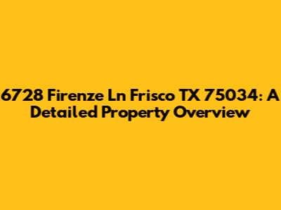 Hey guys! Today, we’re diving deep into the details of the property located at 6728 Firenze Ln, Frisco, TX 75034. Whether you're a potential buyer, a neighbor, or just curious about real estate in the area, this comprehensive overview will provide you with everything you need to know. We'll explore the key features, the neighborhood vibe, and all the essential aspects that make this property stand out. So, let's get started and uncover what makes 6728 Firenze Ln a notable address in Frisco!
