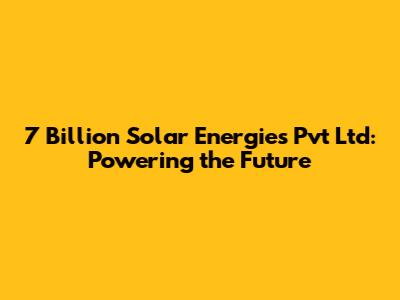 7 Billion Solar Energies Pvt Ltd: Powering The Future