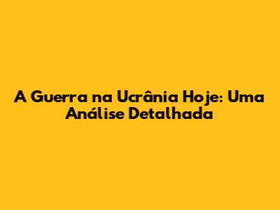 A Guerra Na Ucrânia Hoje: Uma Análise Detalhada