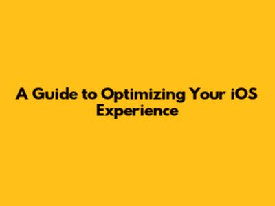 A Guide To Optimizing Your IOS Experience