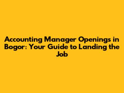 Accounting Manager Openings In Bogor: Your Guide To Landing The Job