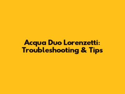 Acqua Duo Lorenzetti: Troubleshooting & Tips