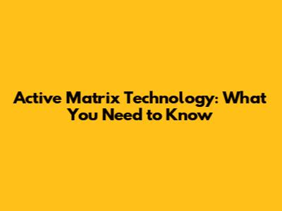 Active Matrix Technology: What You Need To Know