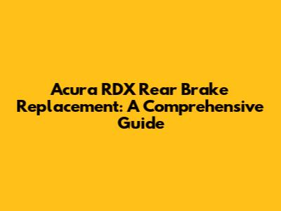 Acura RDX: Rear Brake Replacement Guide