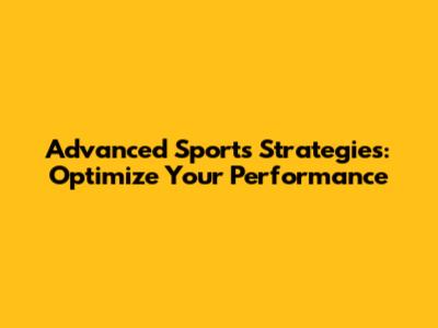 Advanced Sports Strategies: Optimize Your Performance