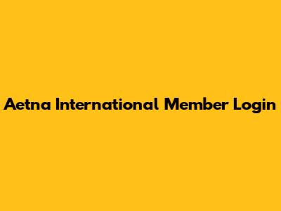 Aetna International Member Login Guide