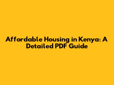Affordable Housing In Kenya: A Detailed PDF Guide
