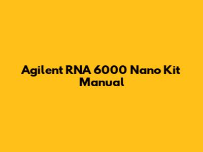 Agilent RNA 6000 Nano Kit: Your User Manual Guide
