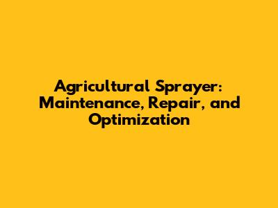 Agricultural Sprayer: Maintenance, Repair, And Optimization