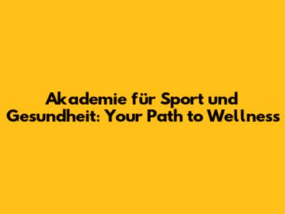 Akademie Für Sport Und Gesundheit: Your Path To Wellness