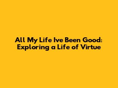 All My Life I've Been Good: Exploring A Life Of Virtue