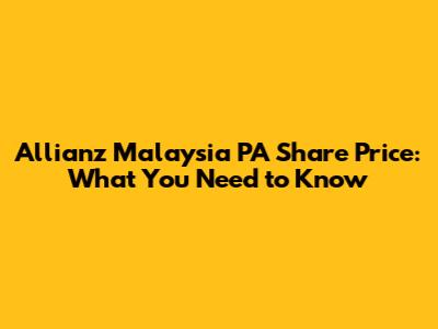 Allianz Malaysia PA Share Price: What You Need To Know