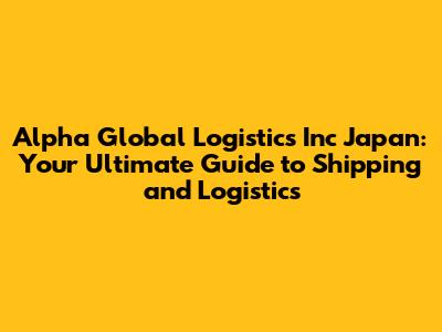 Unveiling Alpha Global Logistics Inc Japan