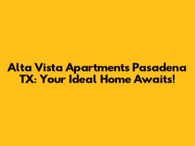 Are you searching for Alta Vista Apartments Pasadena TX? Look no further! Finding the perfect apartment can be a daunting task, but we're here to guide you through everything you need to know about making Alta Vista Apartments in Pasadena, Texas, your new home. This article dives deep into what makes Alta Vista Apartments stand out, from its prime location and diverse floor plans to its impressive amenities and the vibrant community that calls it home. Whether you're a young professional, a growing family, or someone looking to downsize, Alta Vista Apartments offers something for everyone. Let’s explore why so many people are choosing to live in this fantastic community. Think of this as your go-to resource for understanding all the amazing benefits and features that come with calling Alta Vista Apartments your home sweet home.