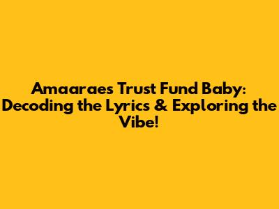 Hey music lovers! Ever gotten a song stuck in your head and just had to know what it was all about? Well, let's dive headfirst into Amaarae's hit track, "Trust Fund Baby". This song isn't just a catchy tune; it's a whole vibe, a story, a statement. We're gonna break down the lyrics, the meaning, and everything else that makes this song so darn irresistible. So, buckle up, because we're about to go on a lyrical adventure!