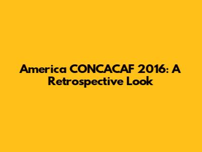 America CONCACAF 2016: A Retrospective Look