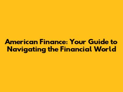 American Finance: Your Guide To Navigating The Financial World