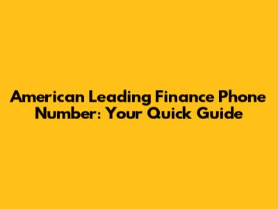 American Leading Finance Phone Number: Your Quick Guide