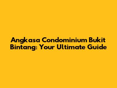 Hey guys! Welcome to your all-inclusive guide to Angkasa Condominium in the vibrant Bukit Bintang area. If you're pondering over a new residence or just curious about this prime property, you've landed in the right spot. We're going to dive deep, exploring everything from its location and features to what makes it a sweet spot for both living and investment. Let's get started, shall we?