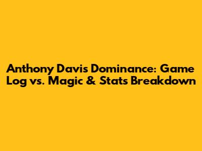 Anthony Davis Dominance: Game Log Vs. Magic & Stats Breakdown