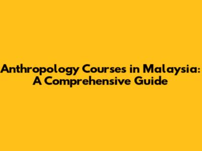 Anthropology Courses In Malaysia: A Comprehensive Guide