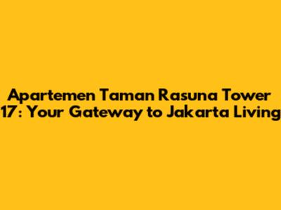 Hey there, future residents! Let's dive into the Apartemen Taman Rasuna Tower 17, a seriously awesome spot in Jakarta that's got everything you could want for city living. This isn't just an apartment; it's a lifestyle. We're talking convenience, community, and comfort all rolled into one. From the get-go, Apartemen Taman Rasuna Tower 17 boasts a prime location. Nestled in the heart of Jakarta, it's super close to business districts, shopping malls, and entertainment hubs. Think about it: no more endless commutes or missing out on the action. You're right in the thick of things, ready to embrace the energy of Jakarta. But what makes this place truly special? It's the attention to detail. The developers really thought about what people need to live comfortably and enjoy their lives. We'll explore all the cool features, amenities, and why Apartemen Taman Rasuna Tower 17 could be your perfect home.
