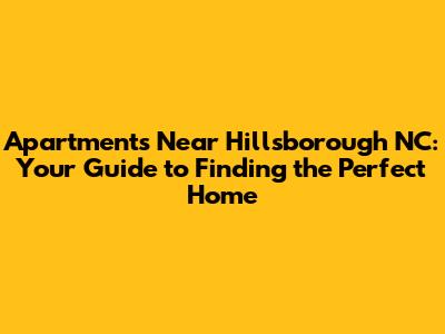 Apartments Near Hillsborough NC: Your Guide To Finding The Perfect Home