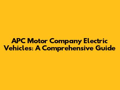 APC Motor Company Electric Vehicles: A Comprehensive Guide