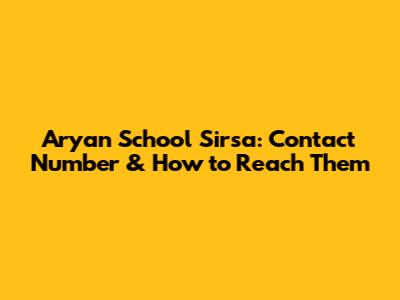 Aryan School Sirsa: Contact Number & How To Reach Them